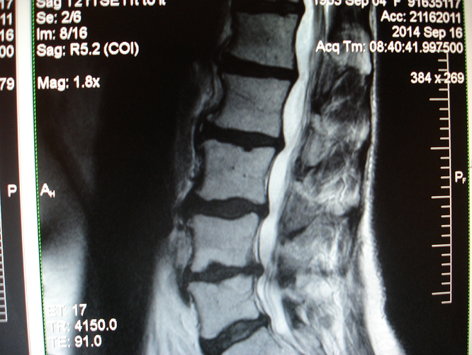 I just added some photos but I did it wrong.....I'll try to add them to this discussion. I'm a little concerned that my discs look different from the MRI pics we got two years ago. I don't know what I'm doing so I won't add any more. I looked at the cd of my sacrum and I can't make heads or tails out of it. In about a week I'll get the radiologist's written report--that will explain everything because I'm in lala land looking at the cds.