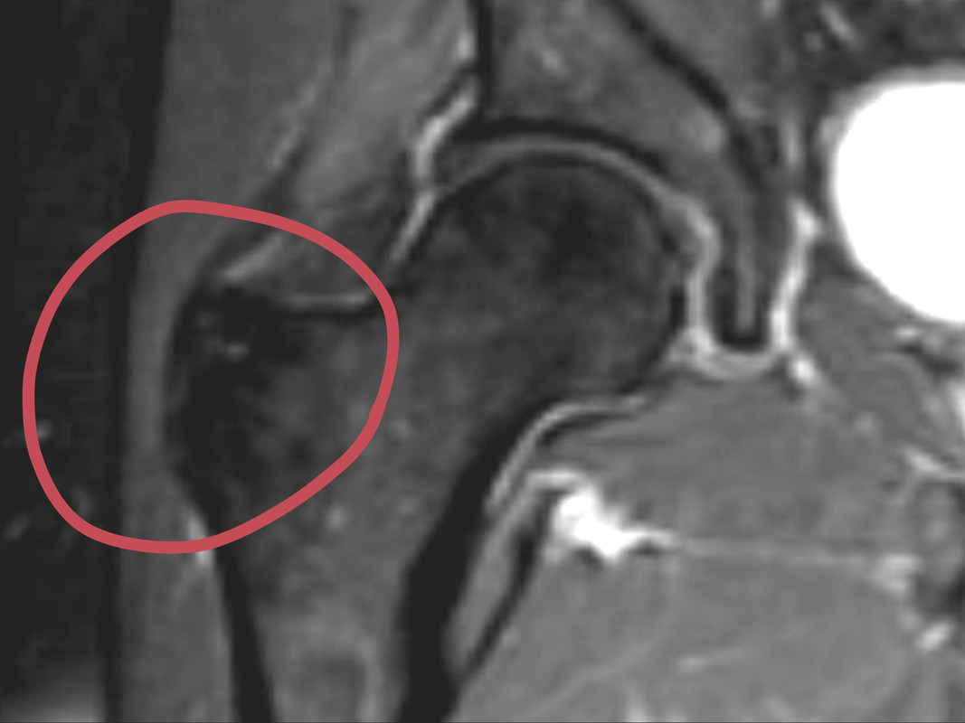 When I showed this area to my GP a few years ago, he said, “that doesn’t makes sense that it would be a arthritis area, it doesn’t get any wear and tear”. But it does get inflammation! You can see the enthesitis in the MRI, I believe, the white area, just in front of the part that looks charred with a blow torch…